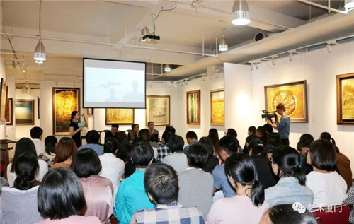 ▲艺术厦门与漆画有约公益大讲堂第一期讲师郑鑫教授和嘉宾吴嘉诠教授、苏国伟教授与现场学员交流