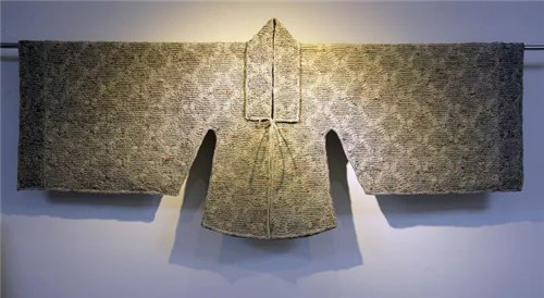 ▲王雷《今日明朝no.6》,报纸搓线及编织技术,183x80cm