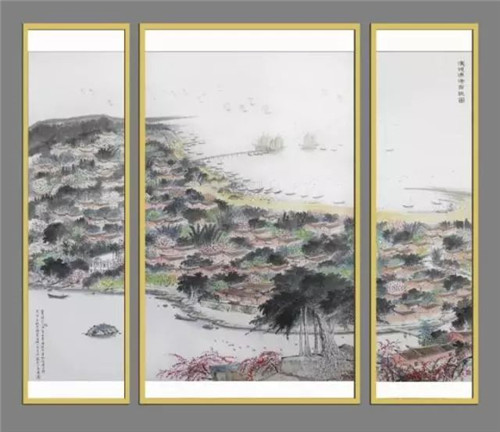 ▲伊玄-澳头村史馆中堂【澳头渔港古风貌图】三联画屏