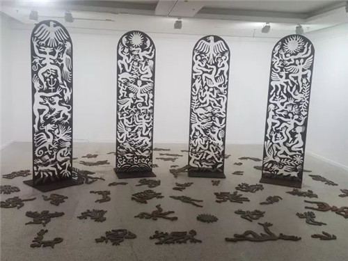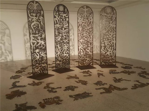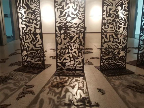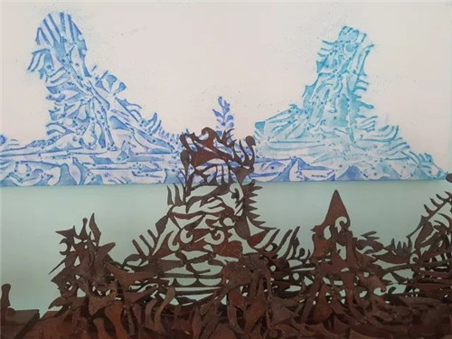 艺术家自述:在沉重与坚硬的铁板上,首先勾勒和切割,