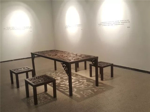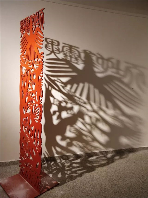 在铁艺镂空装置的基础上衍生出单色纸质拓印的作品形式,