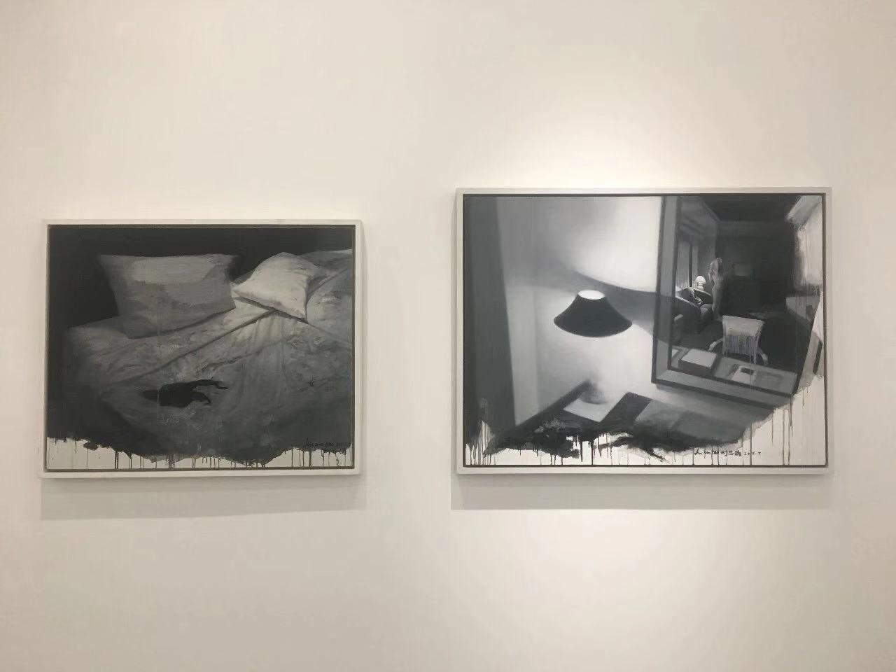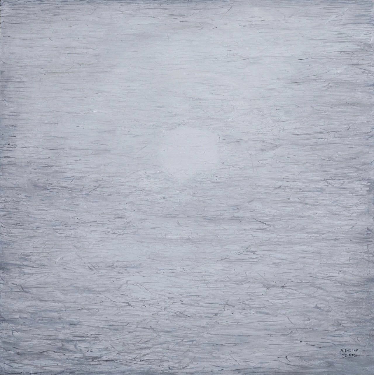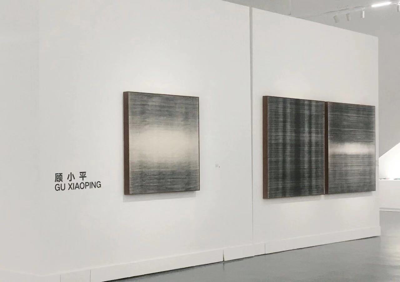 顾小平老师这次展出的这组作品称之为“行走的墨线”,套用现在风靡的说法是“性冷淡风”,远远望去就像雾气蒙蒙的早晨抑或波澜不惊的湖面,看久了内心会归于平静,“从前的日色变得慢,车,马,邮件都慢,一生只够爱一个人”,如果说长时间看画也是一种修行,那么顾小平的这组作品是有静心的功效。