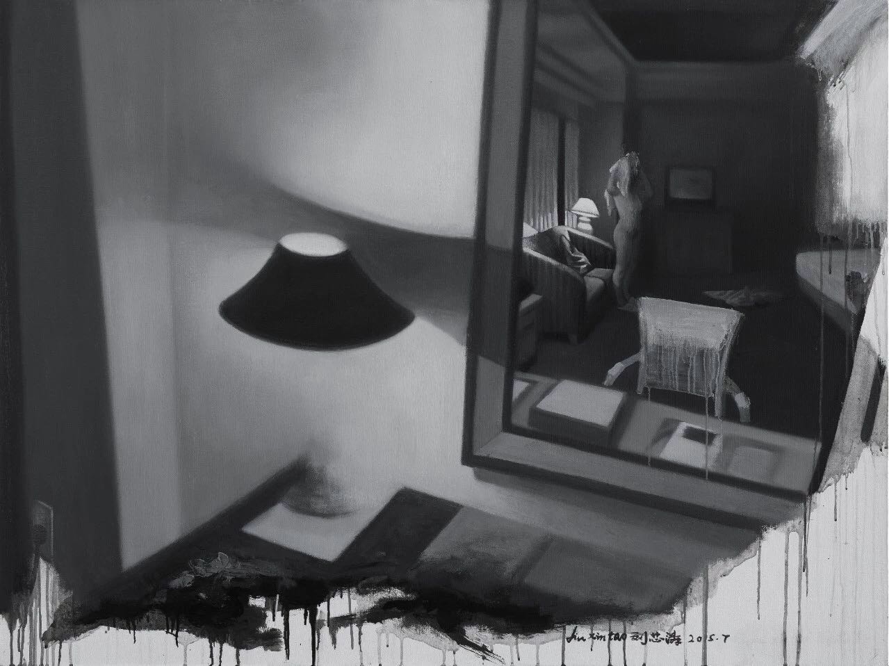 进入室内私密空间,尽管环境优渥,却并不温暖明媚,杵在角落的一个人似乎诉说着无处不在的寂寥与失落。刘芯涛在《暗光》中自述: