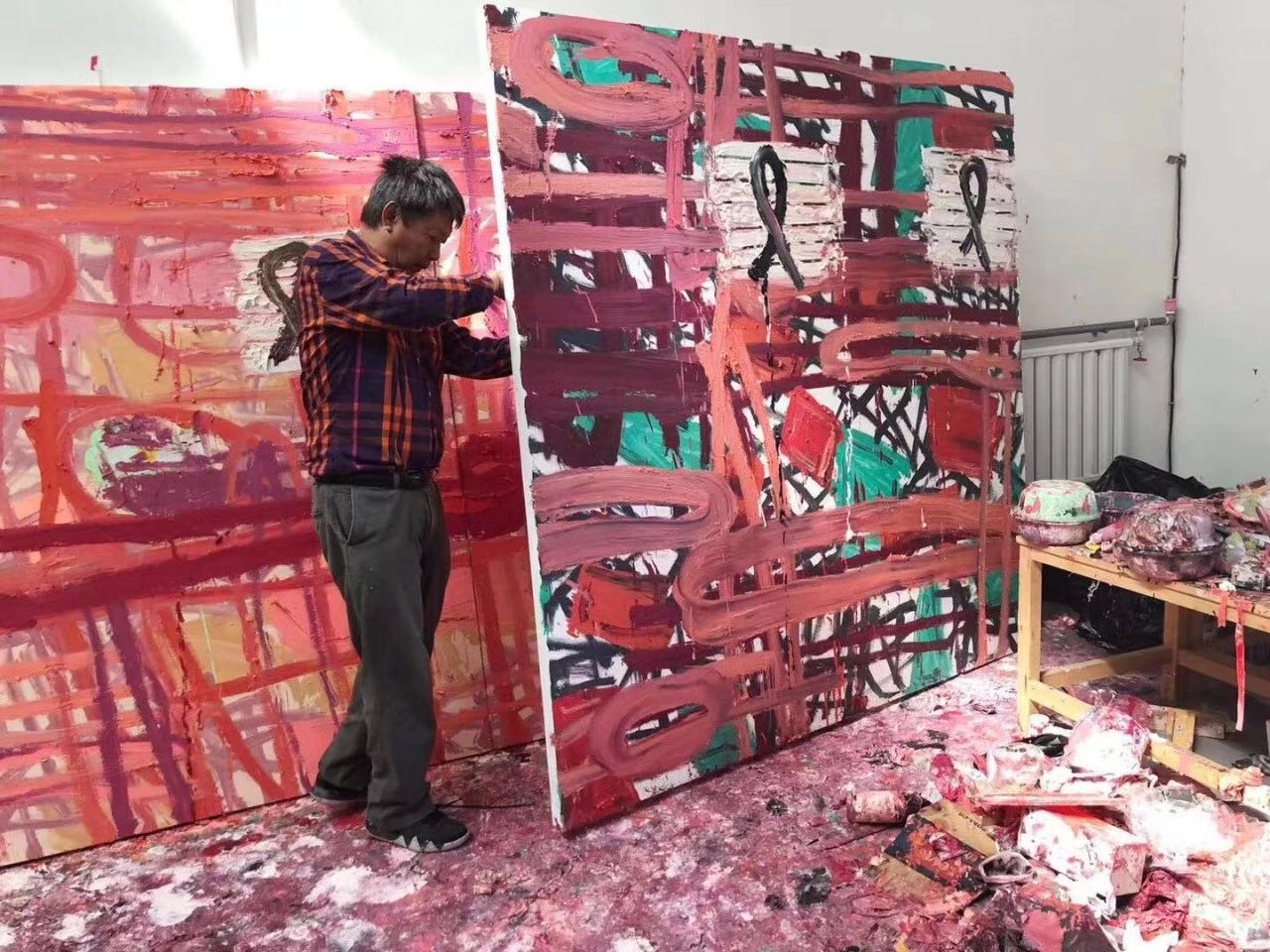 向阳的工作室是我见到最小的工作室之一,进门只有一个站着画画的地儿,几次请我来看画从未入过座,也没有茶水相待,事实也没有可以坐下来聊的地方,每次都是站着直入主题聊画儿,聊完即走,我依然私下跟人讲他是最像艺术家的艺术家,保持着一种纯粹的思考和创作状态。