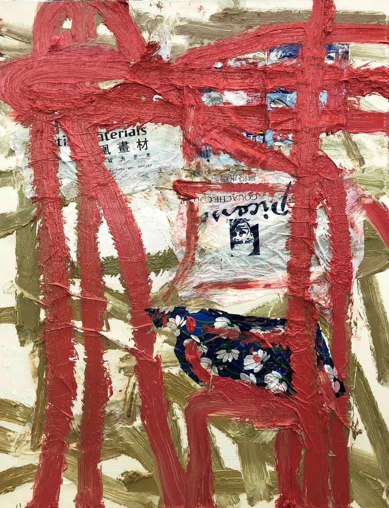 向倪瓒致敬2,布面油彩,塑料,70×90cm,2017