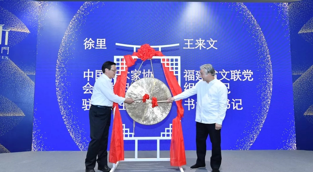 最后,中国美术家协会分党组书记、驻会副主席徐里,福建省文联党组副书记、书记处书记王来文共同敲锣,宣布展览开幕。